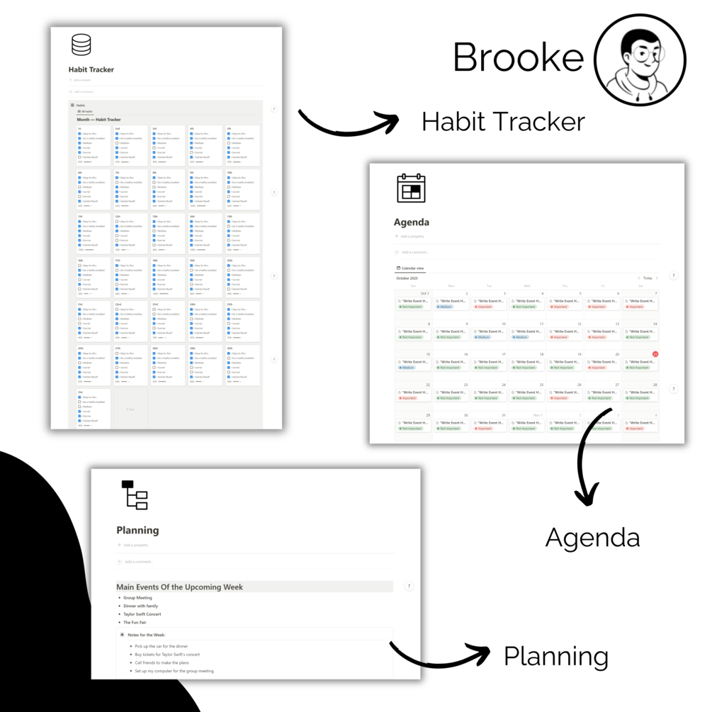 - Habit tracker : Build long-lasting habits with this page that provides you detailed (daily and weekly) statistics.